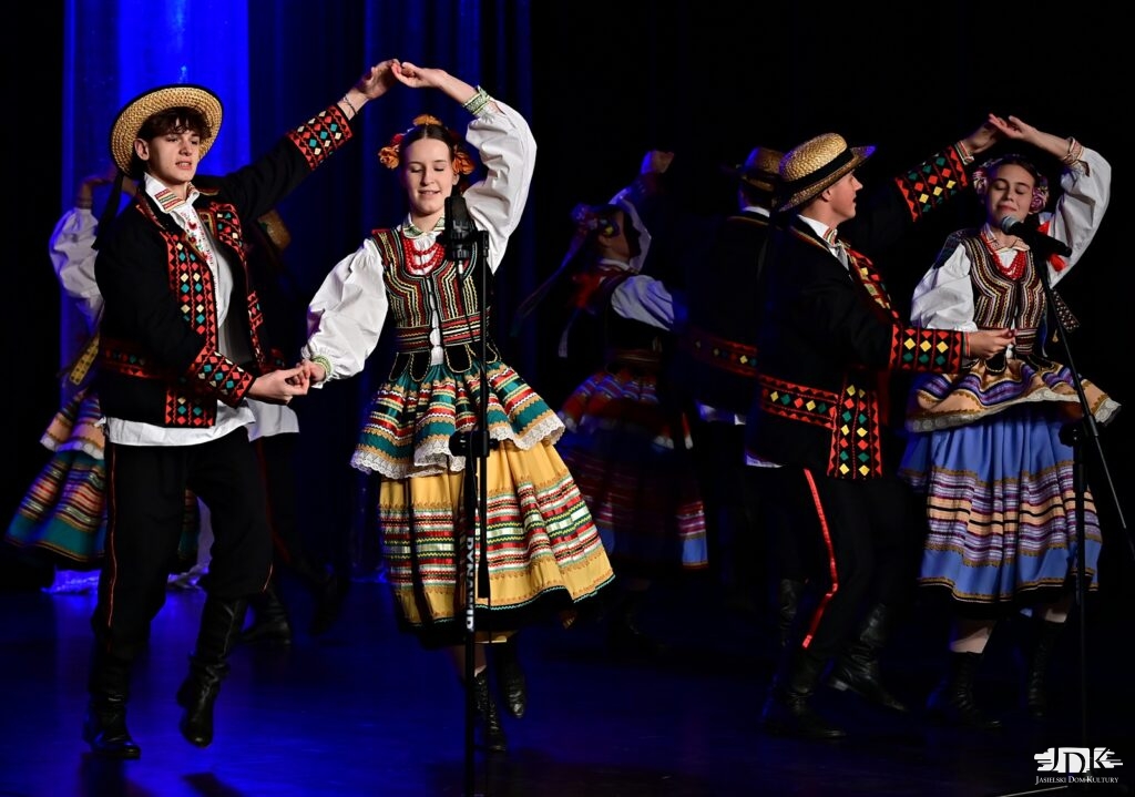 Choć w Jaśle pojawiła się tylko jedna piąta pełnego składu, to już od pierwszych minut młodzi ludzie udowodnili, że nawet w okrojonym zestawieniu potrafią stworzyć prawdziwe widowisko. Artyści zabrali widzów w barwną i rytmiczną wędrówkę przez polskie krainy muzyczne: folkowe motywy lubelskie, wesołe i żywiołowe melodie śląskie, pełne wdzięku i ekspresji piosenki łowickie, a także taneczne opracowania krakowiaków wschodnich i zachodnich. Starannie przygotowane układy choreograficzne, dbałość o detale oraz naturalna radość i wdzięk młodych wykonawców sprawiły, że koncert zachwycił widzów od pierwszych do ostatnich dźwięków. W finale zabrzmiały trzy polskie pieśni patriotyczne, stanowiące klamrę spinającą radosne ludowe melodie ze wzruszającymi utworami, niosącymi ze sobą ważne dla każdego Polaka treści.