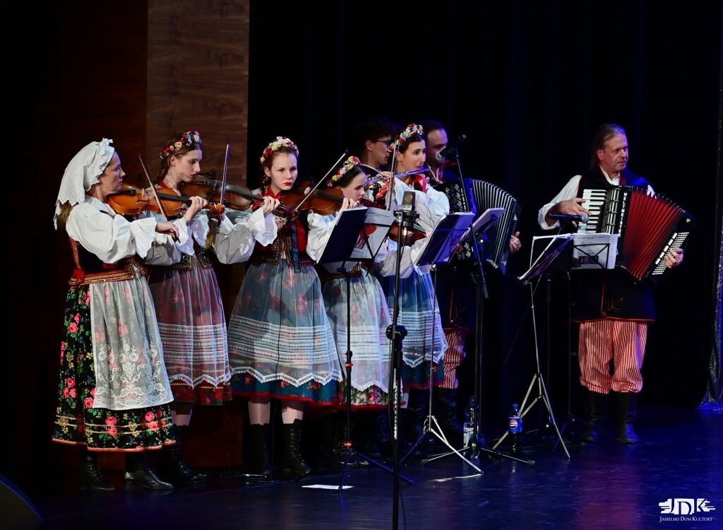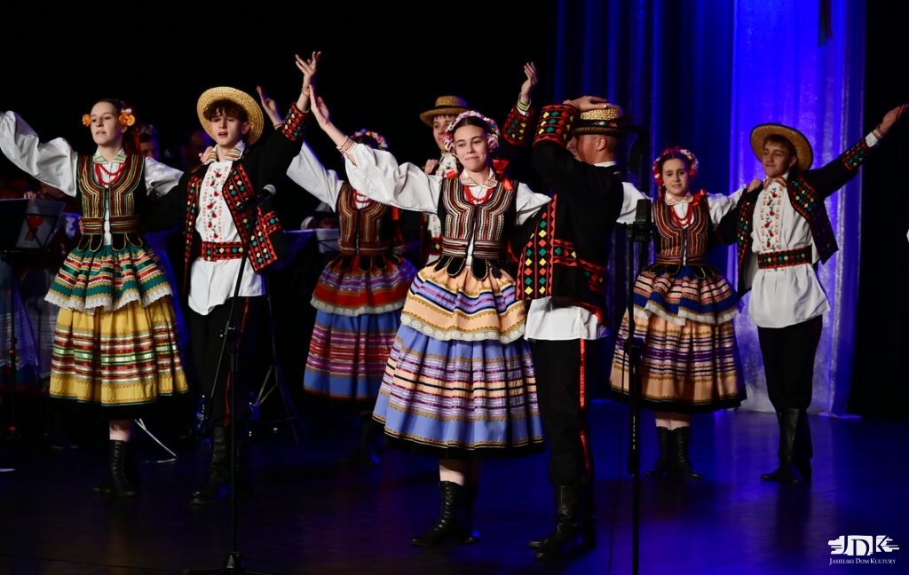 Choć w Jaśle pojawiła się tylko jedna piąta pełnego składu, to już od pierwszych minut młodzi ludzie udowodnili, że nawet w okrojonym zestawieniu potrafią stworzyć prawdziwe widowisko. Artyści zabrali widzów w barwną i rytmiczną wędrówkę przez polskie krainy muzyczne: folkowe motywy lubelskie, wesołe i żywiołowe melodie śląskie, pełne wdzięku i ekspresji piosenki łowickie, a także taneczne opracowania krakowiaków wschodnich i zachodnich. Starannie przygotowane układy choreograficzne, dbałość o detale oraz naturalna radość i wdzięk młodych wykonawców sprawiły, że koncert zachwycił widzów od pierwszych do ostatnich dźwięków. W finale zabrzmiały trzy polskie pieśni patriotyczne, stanowiące klamrę spinającą radosne ludowe melodie ze wzruszającymi utworami, niosącymi ze sobą ważne dla każdego Polaka treści.