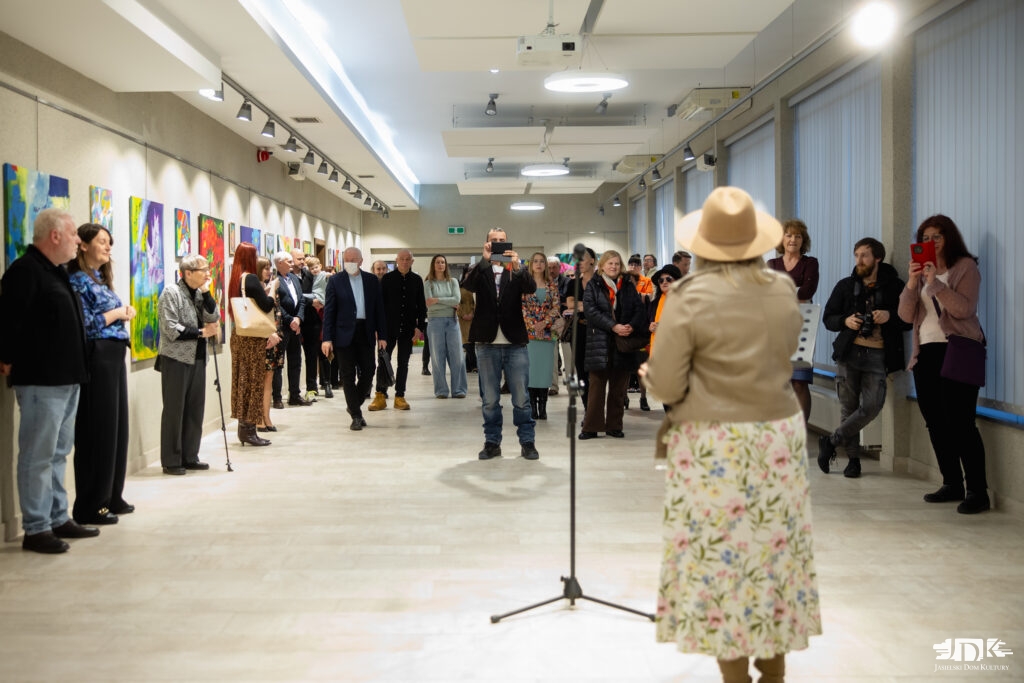 Bywają spotkania ze sztuką, które zaczynają się jeszcze zanim padnie pierwsze słowo. Zanim ktoś zapyta „o czym to jest”, zanim pojawi się interpretacja – pojawia się kolor. I to on prowadzi widza najpierw przez emocje, a dopiero potem przez symbolikę. Wernisaż wystawy „Wiosna jest we mnie”, który miał miejsce 9 kwietnia 2026 r. w Jasielskim Domu Kultury (JDK) był właśnie takim doświadczeniem – opowieścią, którą najpierw się czuje, bo – jak podkreśla sama artystka – w centrum jej twórczości zawsze pozostaje kolor, emocje, energia i światło.