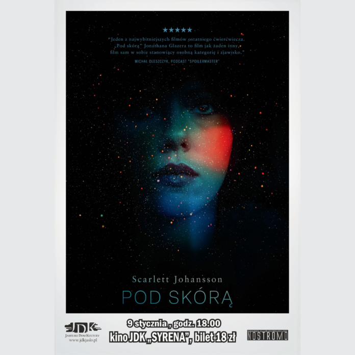 “Pod skórą” zostało zrealizowane przez Jonathana Glazera (twórcę m.in. Oscarowej “Strefy interesów”), który w pierwszoplanowej roli obsadził jedną z największych hollywoodzkich gwiazd – Scarlett Johansson. W filmie brytyjskiego twórcy popularna aktorka wciela się w rolę zmysłowej postaci, która zwabia do siebie przypadkowo poznanych mężczyzn. Krążąc białą furgonetką po ulicach Glasgow zaczyna coraz bardziej interesować się swoimi potencjalnymi ofiarami… Prezentowany na Międzynarodowym Festiwalu Filmowym w Wenecji obraz Glazera zyskał uznanie ze względu na magnetyzującą kreację Johansson, oryginalną oprawę wizualną i wielokrotnie nagradzaną muzykę Mica Levi (wyróżnioną m.in. Europejską Nagrodą Filmową, czy Stowarzyszenia Krytyków Filmowych z Los Angeles).