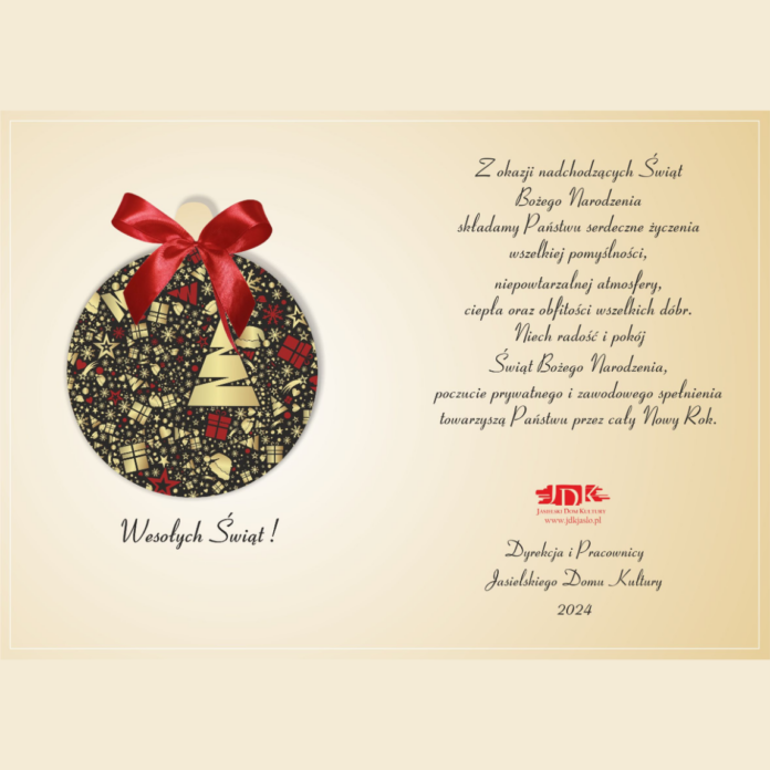 Ręcznie malowane bombki zdobią hol główny Jasielskiego Domu Kultury. Zawieszone na gałęziach we włóczkowych kołach, komponują się z przestrzenią i nadają jej świąteczny klimat. Prace zostały wykonane przez uczestników zajęć Pracowni Edukacji Twórczej pod opieką Katarzyny Gądek – Smyki.