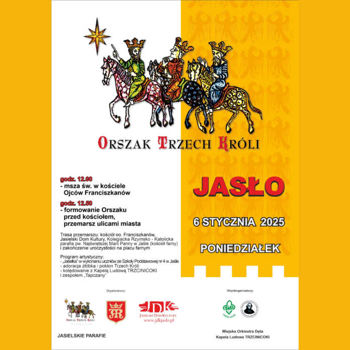 Wydarzenie w Jaśle rozpocznie się mszą św. w kościele Ojców Franciszkanów o godz. 12. Po mszy, orszak wyruszy w stronę rynku, przechodząc obok Jasielskiego Domu Kultury i dotrze do kościoła farnego. W programie artystycznym wystąpią uczniowie Szkoły Podstawowej nr 4 w Jaśle, zaplanowana została również adoracja żłóbka i pokłon Trzech Króli oraz kolędowanie z Kapelą Ludową „Trzcinicoki” i zespołem „Tapczany”.