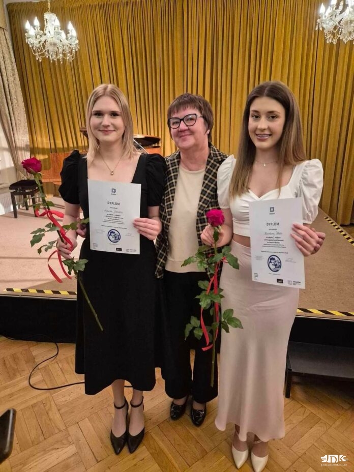 – Zainteresowanie poezją śpiewaną stało się inspiracją dla naszych młodych wokalistek i zachęciło do udziału w III Przeglądzie Poezji Śpiewanej im. Tadeusza Śliwiaka – mówi Ewa Grzebień, kierownik Działu Animacji i Kultury, instruktor śpiewu JDK. Podczas koncertu Laura zaśpiewała „Niebieski młyn” z muzyką Jana Kantego Pawluśkiewicza (z aranżacją fortepianową Ewy Grzebień), zaś Karolina „Szczęście nosi twoje imię” z muzyką Jerzego Horwatha. Karolina wykonała również utwór „Nieobecni” z własnym akompaniamentem (przygotowanie instrumentalne: Wojciech Nowicki), a Laura „Muzeum i dziewczyna” z tekstem Konstantego Ildefonsa Gałczyńskiego i muzyką Włodzimierza Korcza (z aranżacją fortepianową E. Grzebień). Prezentacje naszych wokalistek oceniono najwyżej, otrzymały I nagrodę ex aequo w konkursie, a licznie zgromadzona publiczność nagrodziła je gromkimi brawami. Obok laureatek i wokalistów wyróżnionych w konkursie, w koncercie wzięli udział goście specjalni – artyści krakowskiej „Piwnicy pod Baranami”. Wydarzenie przygotowała i poprowadziła córka poety Weronika Śliwiak, kierownik Dworu Czeczów.