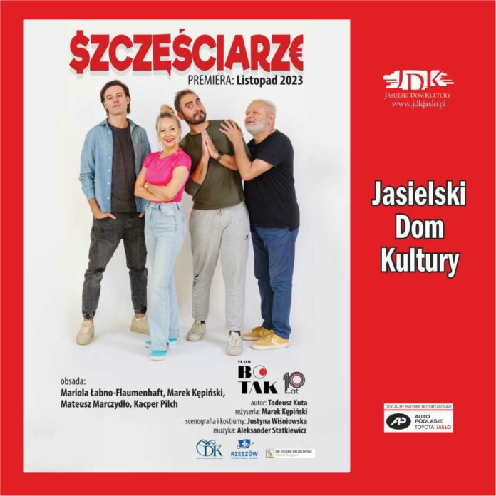 Bolo i Niuńcia żyją ustalonym i uporządkowanym życiem. Nagle spada na nich lawina…szczęścia. Jak sobie z tym poradzą, przekonamy się już 22 kwietnia br. (godz. 18.00), podczas 90-minutowego spektaklu ”Szczęściarze”, w wykonaniu aktorów Teatru Bo Tak. Bilety w cenie 70 zł (zwykły) i 60 zł (ulgowy) do nabycia w sekretariacie Jasielskiego Domu Kultury lub on line.KUP BILET
