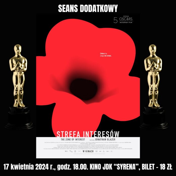 W związku z dużym zainteresowaniem brytyjsko-polsko-amerykańską koprodukcją „Strefa interesów”, informujemy że w Kinie JDK „Syrena” 17 kwietnia br. o godz. 18.00 odbędzie się dodatkowy seans.KUP BILET