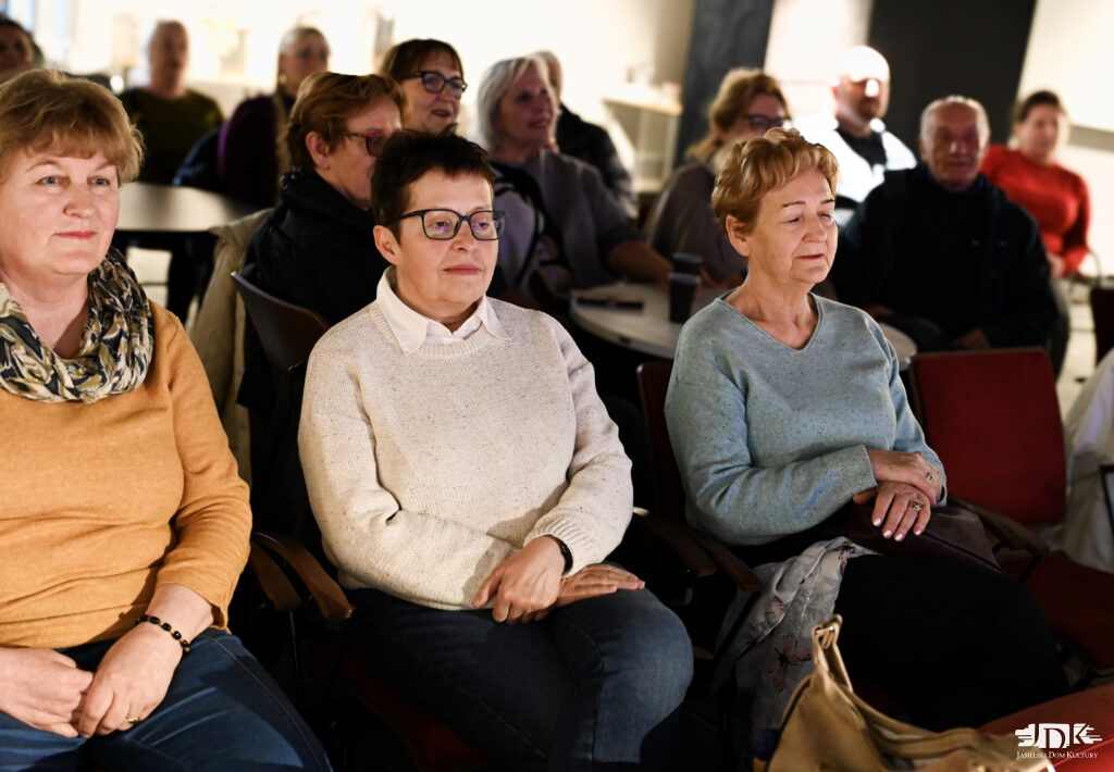 Szczególne słowa uznania skierowała do prowadzącej Klub, Elżbiety Ruszały, dziękując jej za zaangażowanie, „czułość” w budowaniu relacji oraz pomysłowość, dzięki której sympatycy JDK mają okazję poznawać inspirujące osoby. Pochodzący z Warzyc Stanisław Gacek – kolejny bohater Klubu Ludzi z Pasją – mówił o swoich początkach, samodzielnej nauce teorii muzyki i harmonii oraz o tym, jak muzyka towarzyszyła mu przez całe życie. Publiczność miała okazję wysłuchać nie tylko ciekawych opowieści, ale przede wszystkim zanurzyć się w dźwiękach akordeonu – instrumentu niezwykle wszechstronnego, obecnego zarówno w muzyce ludowej, jazzowej, jak i rozrywkowej. Spotkanie szybko przybrało biesiadny charakter – nie zabrakło wspólnego śpiewania, rozmów oraz integracji przy kawie i herbacie.