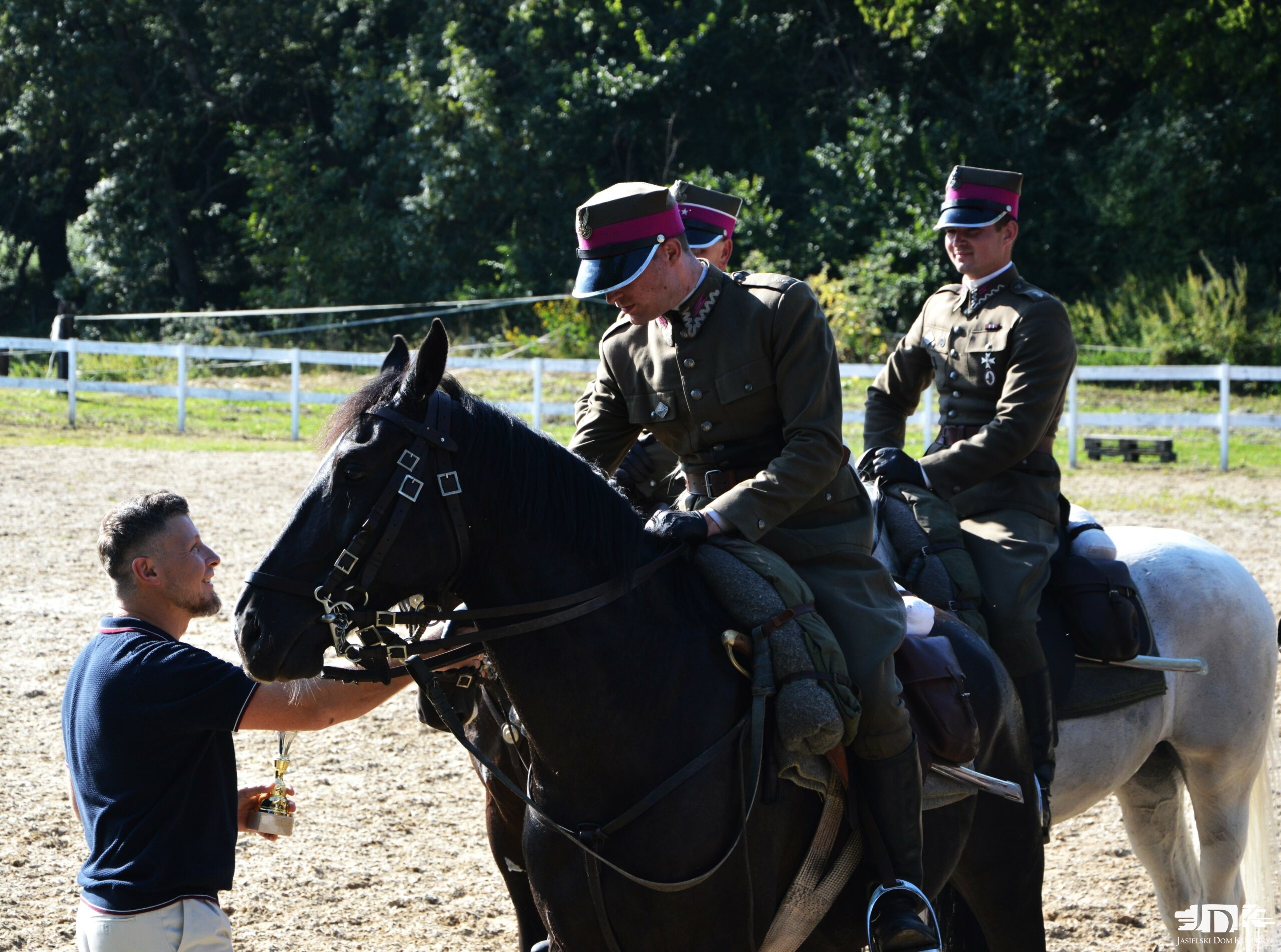 Memoriał Hubala na Łąkach Hubalowych – kawalerzyści – burmistrz wręcza puchary