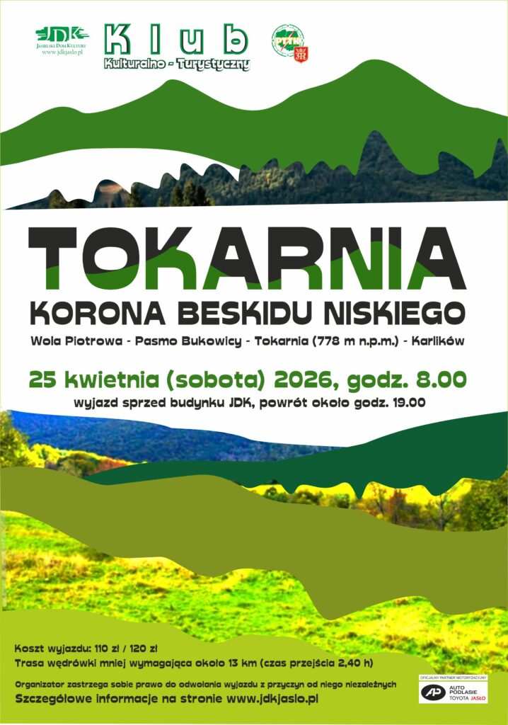 Tokarnia jest najwyższym wzniesieniem malowniczego i krajoznawczo pasjonującego Pasma Bukowicy, w północno-wschodniej części Beskidu Niskiego. Celem kolejnej wycieczki zorganizowanej przez Klub Kulturalno-Turystyczny Jasielskiego Domu Kultury (JDK) i PTTK Oddział w Jaśle będzie zdobycie tego ustronnego, zacisznego wzniesienia, które należy do Korony Beskidu Niskiego. Jest to idealne miejsce dla miłośników natury, historii, kultury i tradycji, a także dla wszystkich poszukiwaczy przygód.