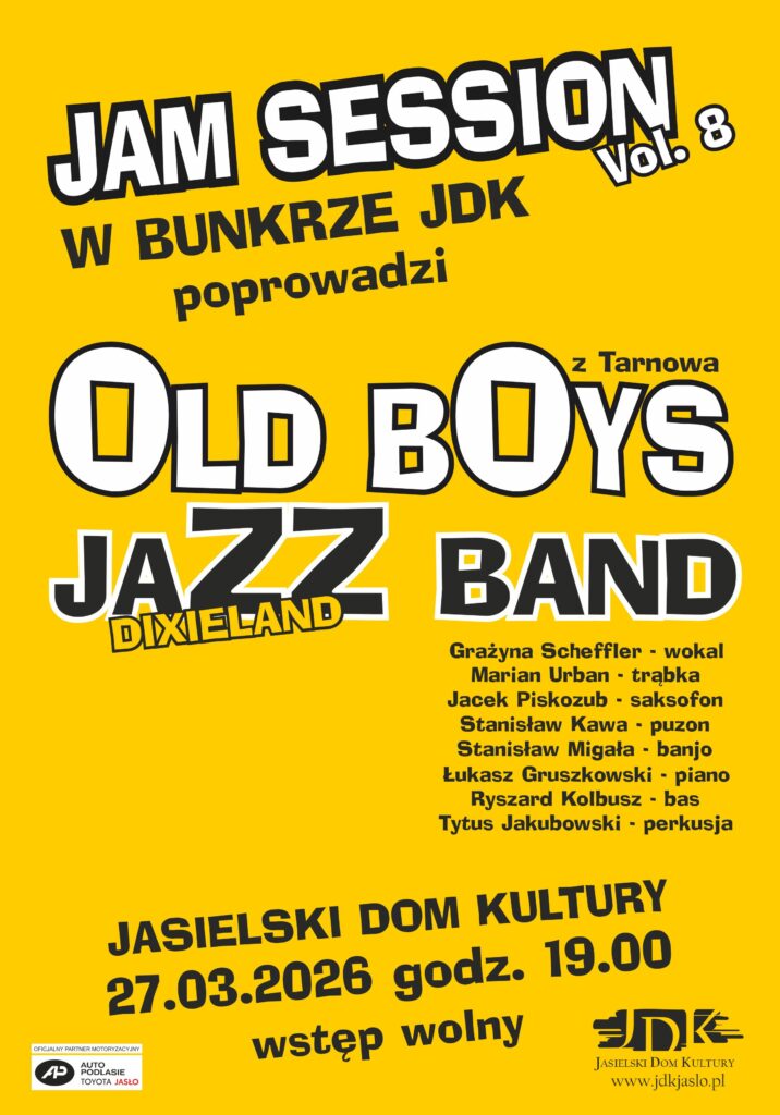 Już w najbliższy piątek, 27 marca o godz. 19.00 w naszym bunkrze odbędzie się kolejne spotkanie jam session. Tym razem muzyczną atmosferę wieczoru stworzy Old Boys Band z Tarnowa, zespół który od lat z powodzeniem przybliża publiczności klasyczne brzmienia jazzu.