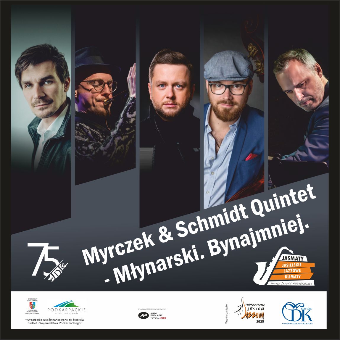 Koncert w wykonaniu Myrczek & Schmidt Quintet to nowy projekt muzyczny ze wyśmienitymi aranżacjami Krzysztofa Herdzina i Sabiny Meck do tekstów Wojciecha Młynarskiego. Premiera tego albumu odbyła się 4 grudnia 2024 r., a 21 listopada br. będzie można usłyszeć materiał na żywo, podczas koncertu w ramach JasMatów – Jasielskich Jazzowych Klimatów im. Jerzego „Dudusia” Matuszkiewicza. Bilety w cenie 70 zł (zwykły) i 60 zł (ulgowy) do nabycia w sekretariacie JDK lub on line.