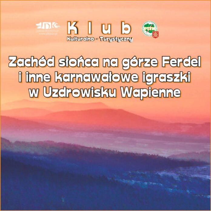 Zachód słońca na górze Ferdel oraz karnawałowe igraszki w Uzdrowisku Wapienne, to główne atrakcje wycieczki, na którą w sobotę, 11 lutego br., zapraszają: Klub Kulturalno-Turystyczny Jasielskiego Domu Kultury i Polskie Towarzystwo Turystyczno-Krajoznawcze Oddział w Jaśle. Liczba miejsc ograniczona.
