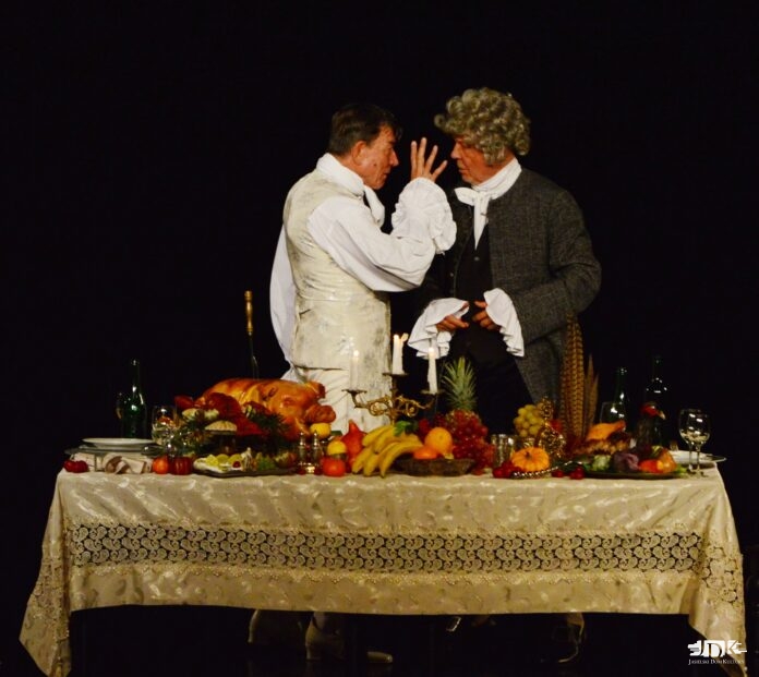 Suto zastawiony stół, a przy nim dwóch geniuszy muzycznych: Jan Sebastian Bach i Fryderyk Händel. Tak mogłoby być, lecz w rzeczywistości nigdy do takiego spotkania nie doszło. Od czego jednak jest wyobraźnia, która pozwoliła Paulowi Barzowi, niemieckiemu autorowi i muzykologowi na stworzenie „Kolacji na cztery ręce”. „Mögliche Begegnung” doczekała się w Polsce wielu wersji. Jedną z nich, w reżyserii Piotra Dąbrowskiego i z jego udziałem w roli mistrza Bacha, widzowie obejrzeli 28 października w Jasielskim Domu Kultury, w ramach XVI Jesiennych Spotkań z Teatrem.