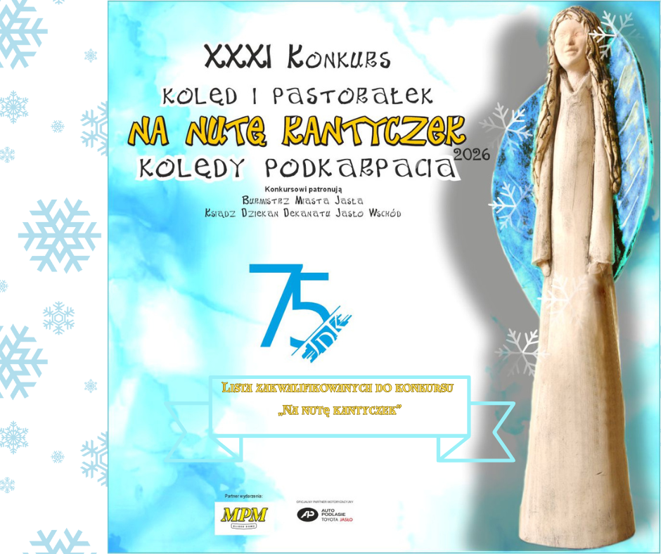 Poniżej zamieszczamy wyniki eliminacji wstępnych 31. Konkursu Kolęd i Pastorałek ”Na nutę kantyczek”- Kolędy Podkarpacia. Jury w ocenie prezentacji brało pod uwagę dobór repertuaru, aranżację oraz umiejętności wokalne i interpretacyjne wykonawców a także jakość nagrań. Do konkursu nie zostały dopuszczone osoby wykonujące utwory niezgodne z regulaminem, skomponowane współcześnie lub kolędy zagraniczne w polskim tłumaczeniu. Wszystkim solistom i zespołom zakwalifikowanym do konkursu gratulujemy. Przypominamy również, że warunkiem udziału w konkursie jest wpłata akredytacji. Akredytacje płatne przelewem na konto: Jasielskiego Domu Kultury 44124023371111000037286213 lub gotówką w kasie JDK w terminie do 31 grudnia 2025 r. W tytule wpłaty proszę podać za kogo jest wpłata – imię i nazwisko solisty lub nazwę zespołu i ilość osób.