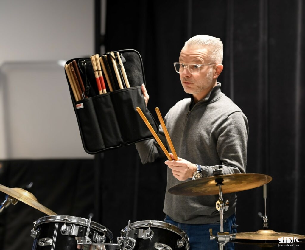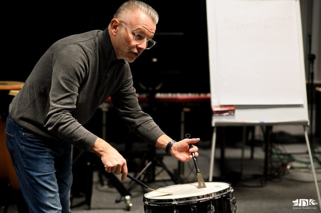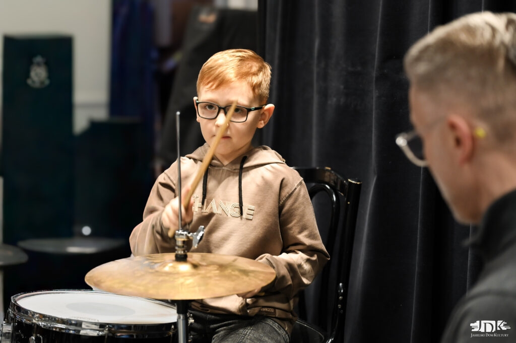 Pierwszego dnia zajęć, które przebiegały pod hasłem „Odkrywamy świat perkusji”, młodzi uczestnicy poznawali różnorodne instrumenty perkusyjne, odkrywali ich brzmienie oraz możliwości rytmiczne. Nie zabrakło twórczych eksperymentów, wspólnego muzykowania i radości z odkrywania świata dźwięków. Prowadzący warsztaty Tomasz Nosal, perkusista związany z wieloma jazzowymi składami na Podkarpaciu, wprowadzał dzieci w zagadnienia tempa, pulsu i współpracy w grupie, pokazując, jak ważne w muzyce są uważność i wzajemne słuchanie się.