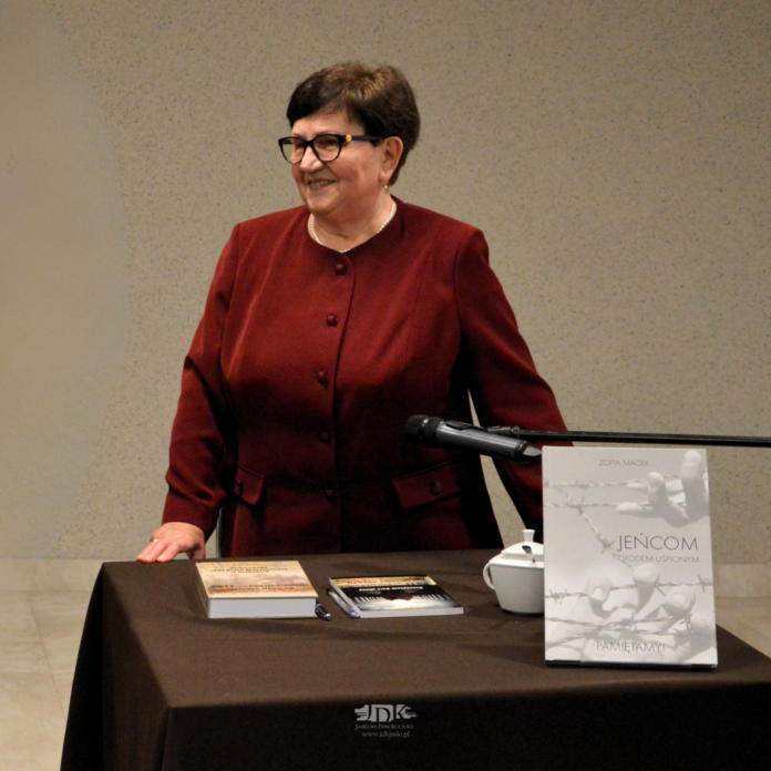 Podczas spotkania Pani Zofia Macek, autorka kilkunastu opracowań o trudnych losach małej ojczyzny, zaprezentowała swą najnowszą publikację „Jeńcom głodem uśpionym. Pamiętamy!” , będącą zwieńczeniem jej dorobku. Większość kadrów znajdujących się w książce została uchwycona przez Niemca, który jesienią 1939 r. przybył do Szebni z budowlaną 2. Kompanią Wehrmachtu, odpowiedzialną za utworzenie obozu. Siła obrazu niejednokrotnie przemawia bardziej niż słowa. A fotografie znanych okolic w nieznanej, mrocznej odsłonie uzmysławiają nam, jak wiele trudnych wyborów, tragicznych zdarzeń i krętych dróg przodków doprowadziło historię każdego z nas do miejsca, w którym jesteśmy.