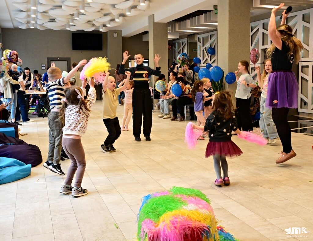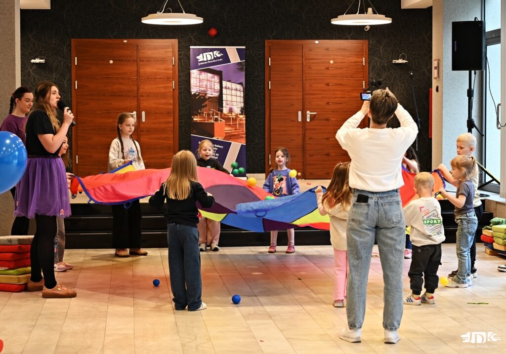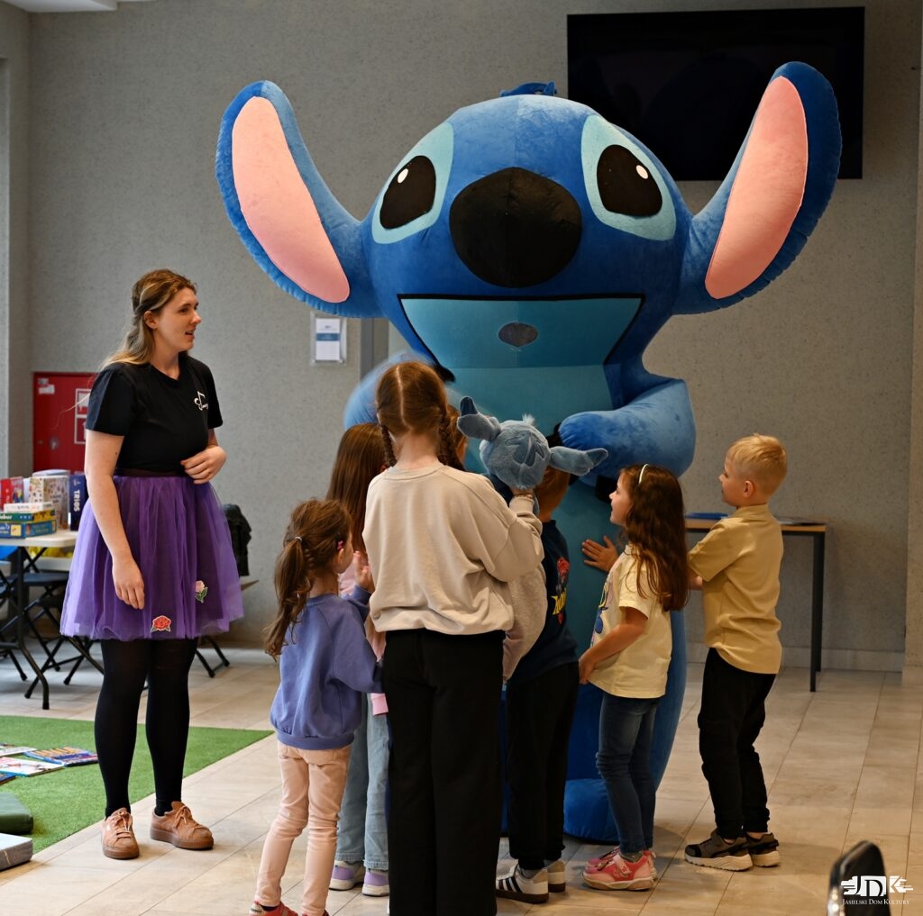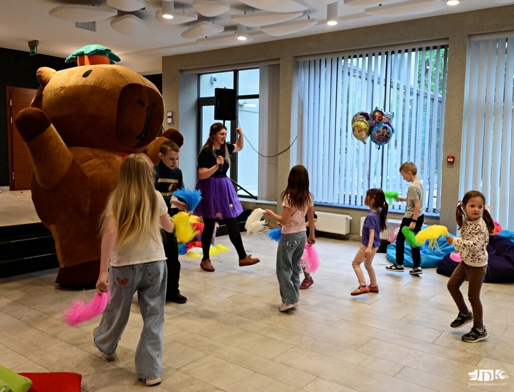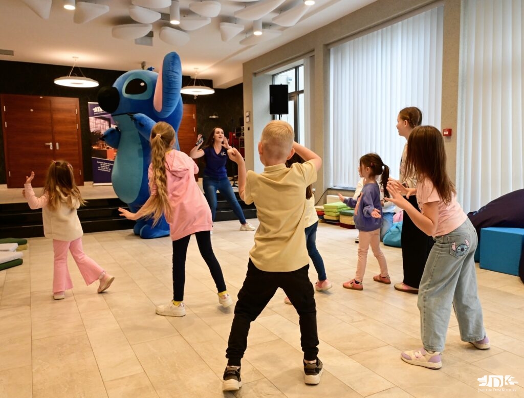 Zaplanowane wcześniej działania wokół JDK, z powodu zimnej i deszczowej pogody zostały przeniesione do wewnątrz. Nie wpłynęło to jednak na brak zainteresowania i najmłodsi wraz z rodzicami lub dziadkami byli już z nami od samego początku. W tym czasie spotkanie edukacyjne prowadził Pan Poeta, który bardzo szybko i sprawnie wciągnął dzieci w wir zabawy i nauki jednocześnie. Po nim stery przejęła tarnowska Agencja Artystyczna E-Muz, która zaserwowała dzieciom i dorosłym prawdziwie europejską podróż, poprzez taniec, gry, konkursy i zabawy. Gośćmi specjalnymi, wyczekiwanymi z wielką niecierpliwością były maskotki: Stich i Kapibara, z którymi wszyscy chętnie robili sobie pamiątkowe zdjęcia.