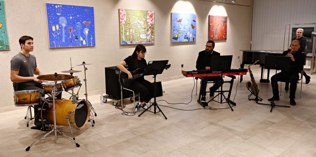Wernisażowi towarzyszył mini koncert w wykonaniu zespołu (Maja Radoń, Kacper Nowicki i Jacek Czeluśniak) pod kierownictwem Wojtka Nowickiego.