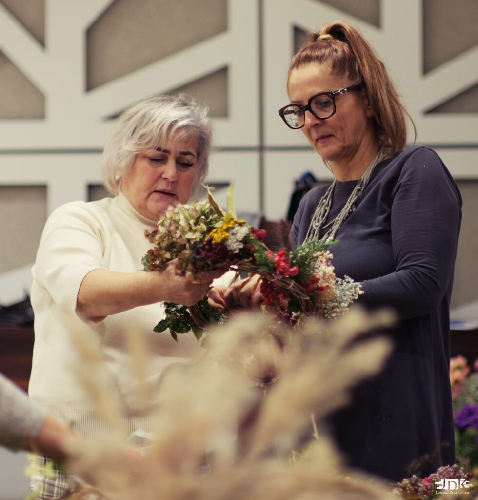 W czwartkowe popołudnie, 30 października br. w Jasielskim Domu Kultury odbyły się relaksacyjne warsztaty „Jesienne wicie wianków”. Spotkanie poprowadziła znana już ze swojej twórczości sympatykom JDK Iwona Bródka, rękodzielniczka i autorka projektu „Dusza na poddaszu”.