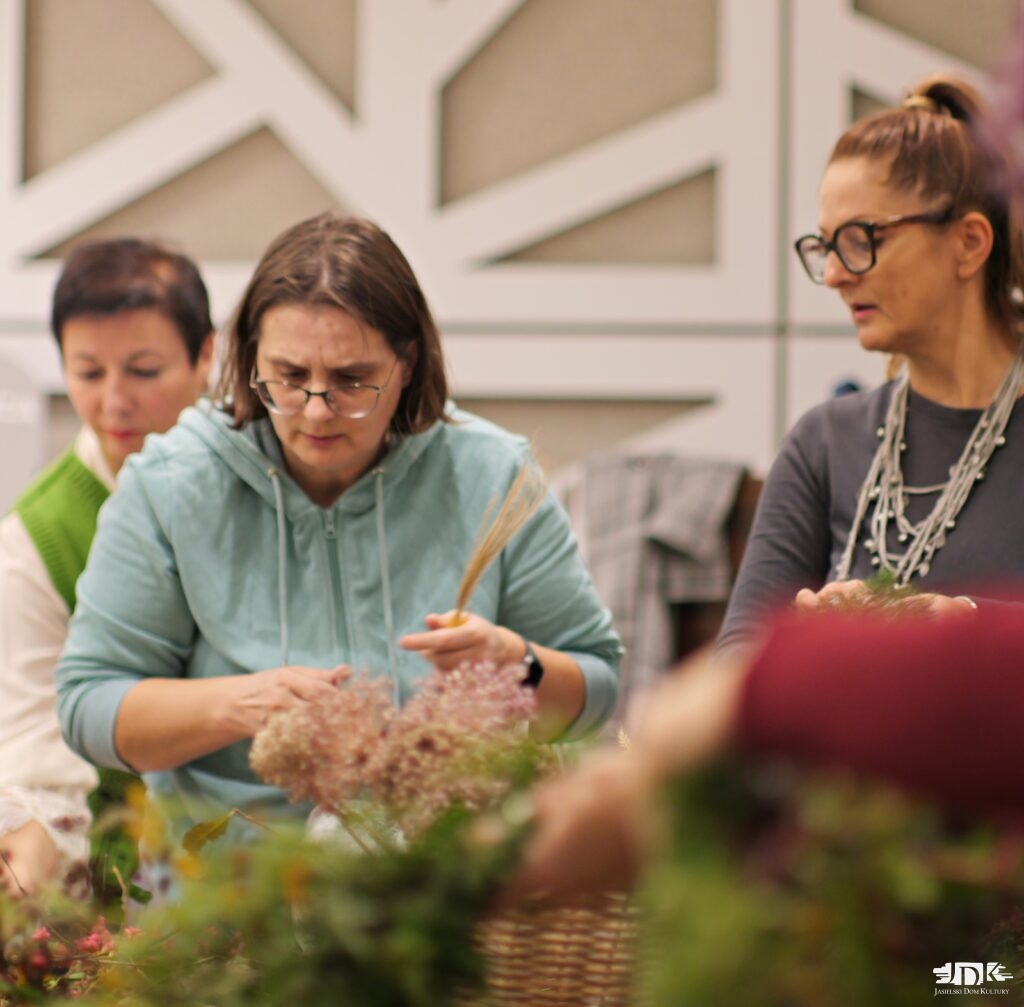 Korzystając z barwnych i pachnących jesienią darów natury – kolorowych liści, owoców i gałązek – panie stworzyły oryginalne kompozycje, które zabrały ze sobą do domów. Warsztaty z Iwoną Bródką miały charakter nie tylko artystyczny, ale również, a może przede wszystkim – relaksacyjny. Uczestniczkom dały możliwość oderwania się od codzienności, wyciszenia oraz rozwijania kreatywności.