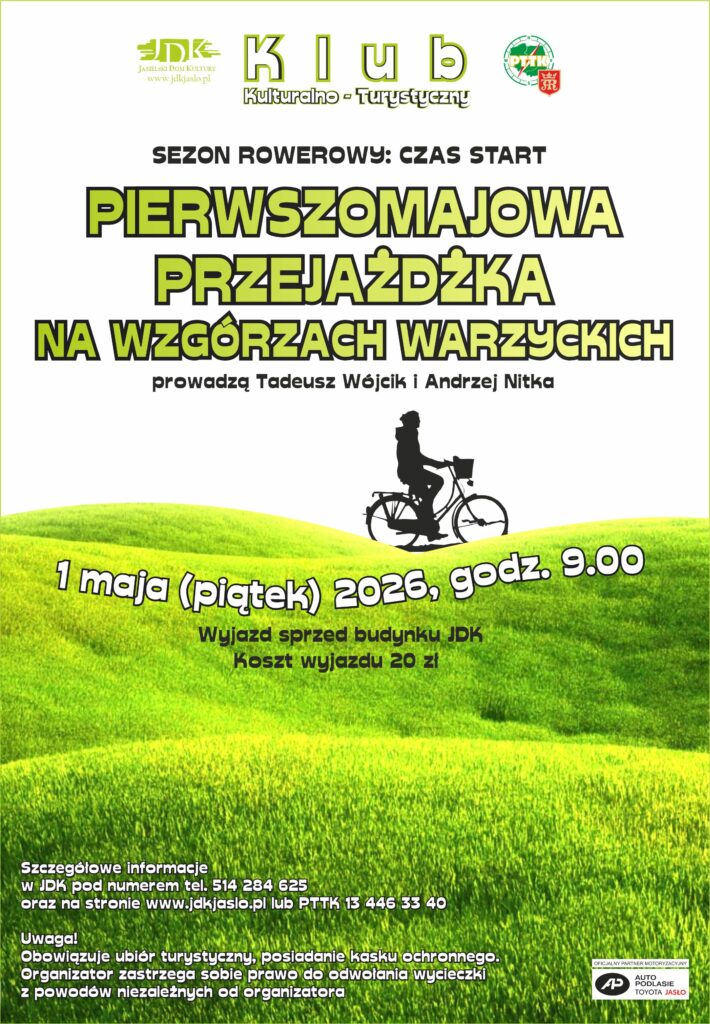 Maj to jeden z najpiękniejszych miesięcy w roku i jeden z najbardziej wyczekiwanych, w związku z czym jest to idealna okazja, by rozpocząć rowerową wiosnę. Wzorem lat ubiegłych pierwszy dzień maja obrano na inaugurację sezonu rowerowego. Klub Kulturalno-Turystyczny Jasielskiego Domu Kultury (JDK) wraz z jasielskim Oddziałem PTTK przygotował wyprawę rowerową w jeden z najbardziej atrakcyjnych podjasielskich terenów zielonych.