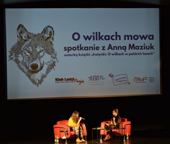 Wydana w październiku ubiegłego roku debiutancka książka Anny Maziuk zbiera świetne recenzje czytelnicze. Dziennikarka z dużym znawstwem tematu charakteryzuje naszego krajowego wilka, ale też i ludzi, którzy żywią do drapieżników skrajne uczucia. Z reporterskiej opowieści autorki wyłania się wilk dziki, ale nie zły. – Odkąd wyszliśmy z lasu, to przestaliśmy je (wilki -przyp. red.) rozumieć. A jak przestaliśmy używać zmysłów – tak jak robią to zwierzęta – to las zaczął nas przerażać i mieszkający w tym ciemnym lesie wilk też – mówiła podczas spotkania w JDK Anna Maziuk.