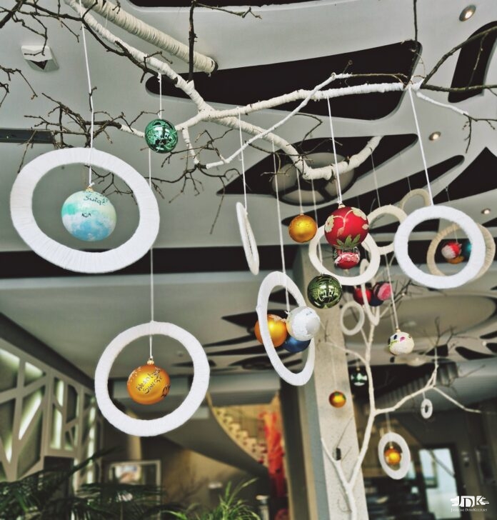 Ręcznie malowane bombki zdobią hol główny Jasielskiego Domu Kultury. Zawieszone na gałęziach we włóczkowych kołach, komponują się z przestrzenią i nadają jej świąteczny klimat. Prace zostały wykonane przez uczestników zajęć Pracowni Edukacji Twórczej pod opieką Katarzyny Gądek – Smyki.