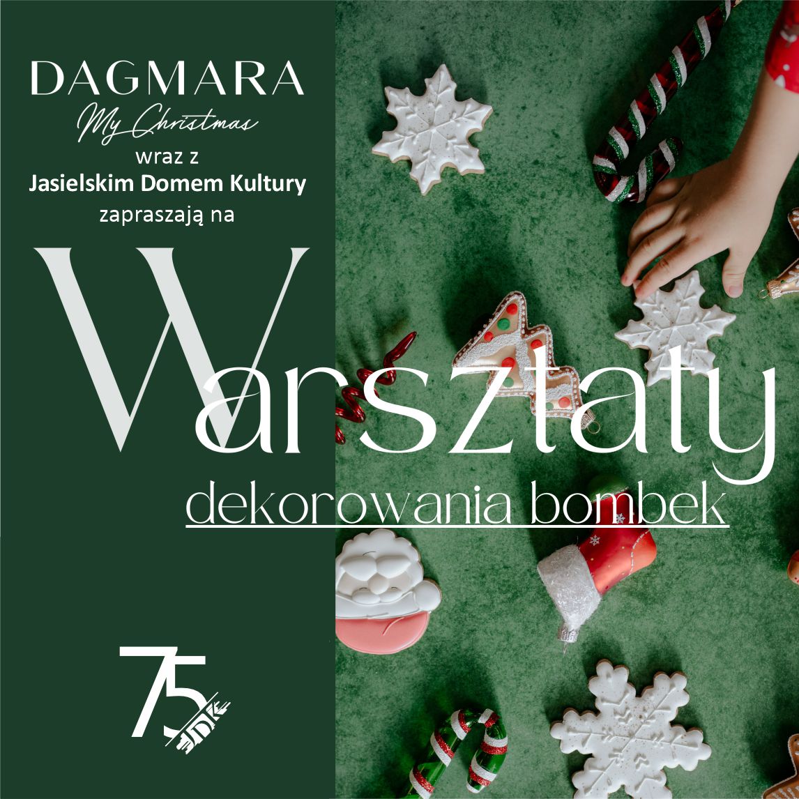 Jasielski Dom Kultury (JDK) wraz z Dagmara My Christmas zapraszają szkoły i placówki edukacyjne, a także osoby indywidualne na wyjątkowe warsztaty dekorowania bombek, które wprowadzą małych i dużych w magiczny klimat nadchodzących Świąt. Podczas warsztatów uczestnicy otrzymają wszystkie potrzebne materiały, a pod okiem prowadzących stworzą niepowtarzalne dekoracje, które będą mogli zabrać ze sobą, dekorując domowe choinki.