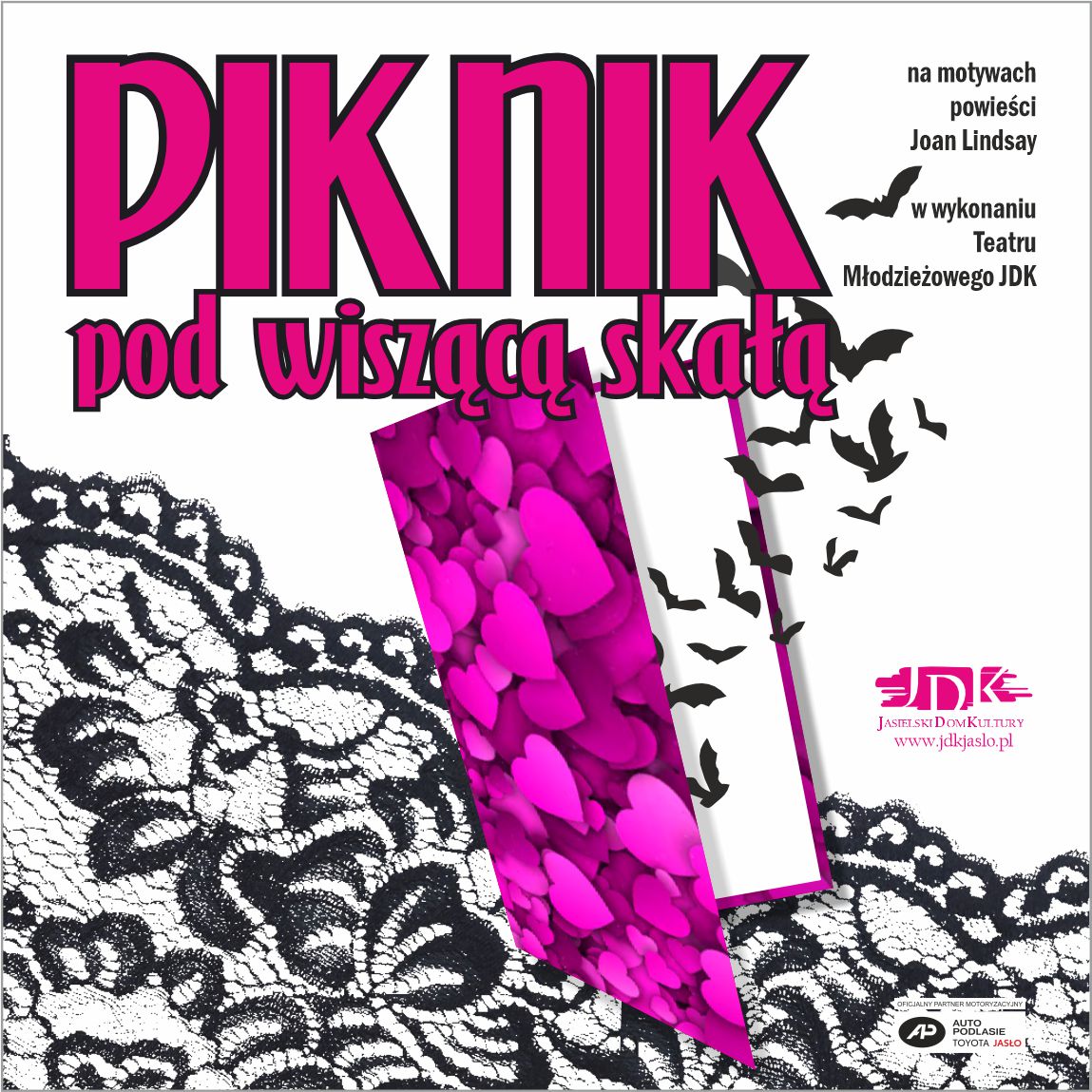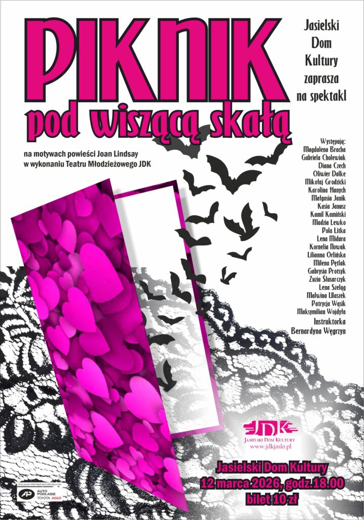 Spektakl powstał na podstawie powieści Joan Lindsay „Piknik pod Wiszącą Skałą„. Proza doczekała się także ekranizacji w 1975 roku. Natomiast sztuka w wykonaniu Teatru Młodzieżowego JDK została wyreżyserowana przez Bernardynę Węgrzyn, instruktorkę teatru. Na scenie Jasielskiego Domu Kultury wystąpią młodzi aktorzy (Magdalena Bracha, Gabriela Cholewiak, Diana Czech, Oliwier Dalke, Mikołaj Grodzicki, Karolina Hanych, Małgosia Janik, Kasia Janusz, Kamil Kamiński, Madzia Lewko, Pola Litka, Lena Midura, Kornelia Nowak, Lilianna Orlińska, Milena Pętlak, Gabrysia Protsyk, Zuzia Ślusarczyk, Lena Szeląg, Malwina Ulaszek, Patrycja Wąsik, Maksymilian Wojdyła), którzy zmierzą się z jednym z najbardziej intrygujących literackich i filmowych motywów XX wieku.