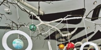 Ręcznie malowane bombki zdobią hol główny Jasielskiego Domu Kultury. Zawieszone na gałęziach we włóczkowych kołach, komponują się z przestrzenią i nadają jej świąteczny klimat....