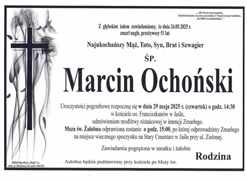 W czwartek żegnamy naszego kolegę śp. Marcina Ochońskiego