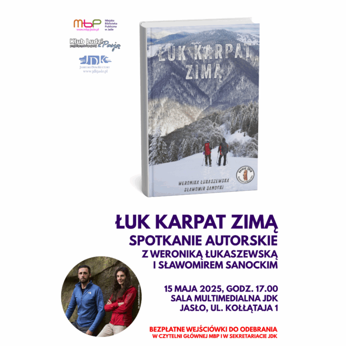 Miejska Biblioteka Publiczna w Jaśle i Jasielski Dom Kultury w ramach „Klubu Ludzi z Pasją” zapraszają na rozmowę o książce Weroniki Łukaszewskiej i Sławomira Sanockiego „Łuk Karpat zimą”. Realizatorzy pierwszych światowych przejść: łuku Karpat zimą (2000 km) i Wielkiego Szlaku Włoskiego – Sentiero Italia CAI (7000 km) podczas spotkania promować będą swoją pierwszą publikację.