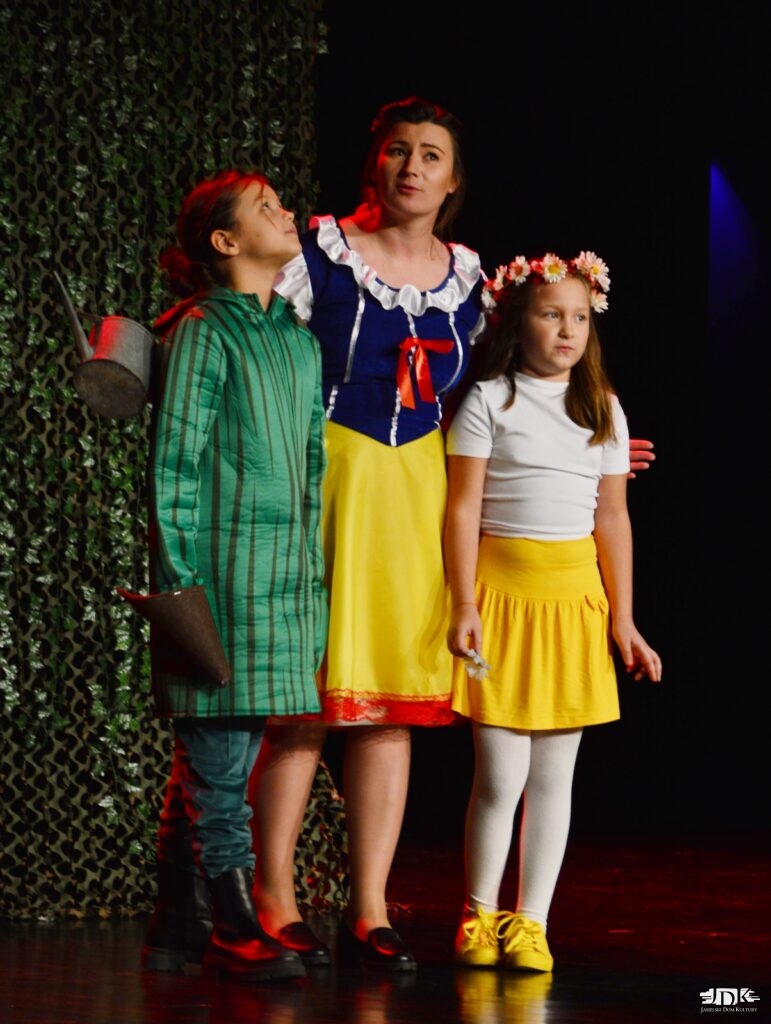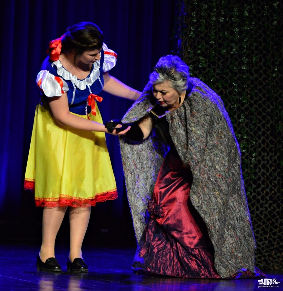 Historia osieroconej królewny i złej macochy królowej nadal wywołuje wiele emocji, ale jest też piękną lekcją o życiu i o tym, że zawsze warto być dobrym. Bez względu na okoliczności. W spektaklu wyreżyserowanym przez Jacka Buczyńskiego, instruktora teatralnego JDK, akcja była bardzo dynamiczna, czasami pełna grozy i napięcia. Ale wszystko skończyło się dobrze. Dyskretna scenografia, kolorowe kostiumy, współczesne dialogi i odrobina humoru sprawiły, że spektakl spotkał się z bardzo dobrym odbiorem widzów. Tych małych i tych dużych.